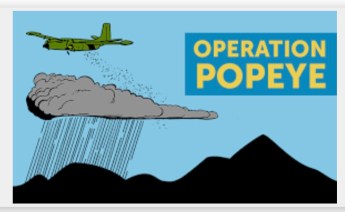 During the period from 1967 to 1972, a military chemical weather modification (cloud seeding) project called “Operation Popeye,” was carried out by the United States Air Force during the Vietnam War