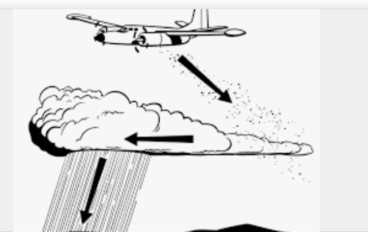 “Cloud seeding” is a type of weather modification that aims to change the amount or type of precipitation that falls from clouds by dispersing substances into the air that serve as cloud condensation or ice nuclei, which alter the microphysical processes within the cloud.