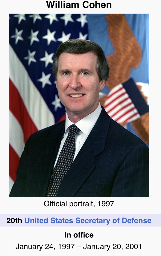 American lawyer, author, and politician from the U.S. state of Maine. Secretary of Defense (1997–2001)