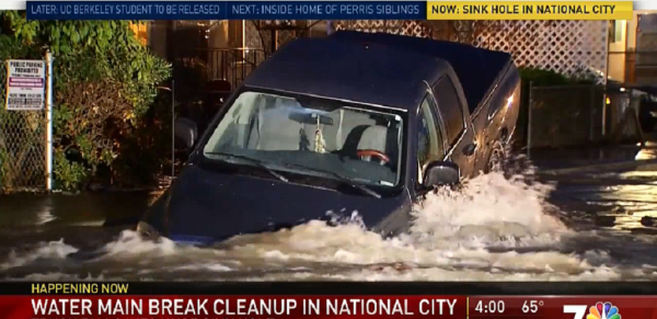 San Diego sinkhole yawns open after water main break, swallows pickup